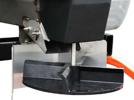 The spreader has a low-profile, 8 cubic foot poly hopper available in black, red and yellow. The hopper's frameless, double-wall construction is durable and highly corrosion resistant. The spreader mounts to a 2 in. Class 4 hitch with patented horizontal and vertical adjustment.